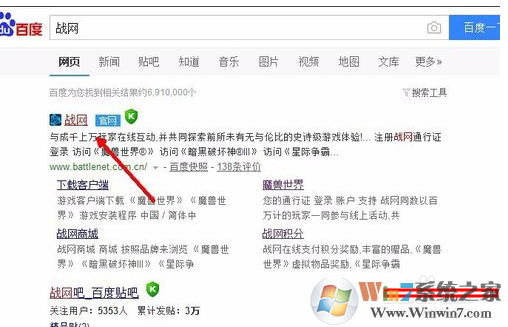 通過度娘搜索“戰(zhàn)網(wǎng)”,然后點擊進入官網(wǎng);