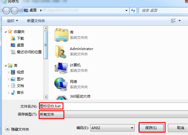 2、另存為圖標(biāo)空白修復(fù).bat 文件格式選擇為全部