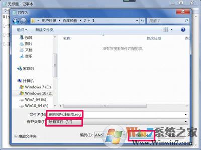 8、輸入完成后,將這個文檔保存,名字可以隨便起,但后綴一定要為.reg類型,如“刪除損壞注冊項.reg”,保存時選擇“所有文件(*.*)”。