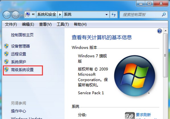 2、點擊“高級系統(tǒng)設(shè)置”選項,如下圖所示