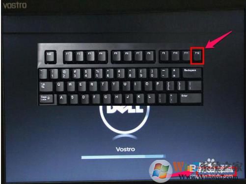 打開(kāi)戴爾Dell電腦,當(dāng)進(jìn)入到標(biāo)志畫(huà)面時(shí),馬上按鍵盤(pán)上方的F12鍵,就能進(jìn)入到快捷啟動(dòng)菜單。