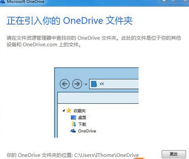 3、設(shè)置同步默認文件夾:OneDrive默認將同步文件存放在,例如C:\Users\IThome\OneDrive目錄下,用戶可以自行更改至其他路徑;