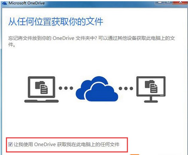 5、最后一項,勾選“讓我使用OneDrive獲取我在此電腦上的任何文件”選項