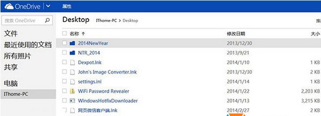 b、在OneDrive網(wǎng)頁端左側(cè)的電腦,會自動羅列已經(jīng)授權(quán)的電腦名稱,例如IThome-PC。