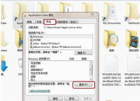 2、在該文件夾屬性窗口選擇“安全”選卡,然后點(diǎn)擊下方的“高級”按鈕;