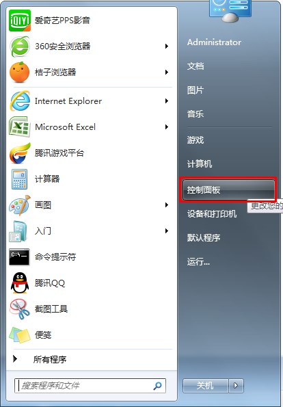 1、點(diǎn)擊開(kāi)始菜單、選擇控制面板