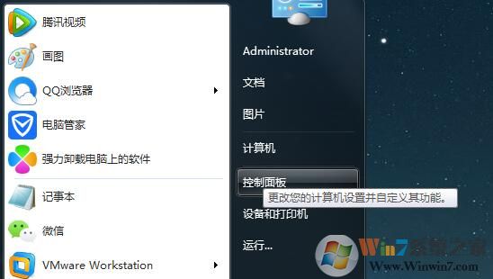 1、點(diǎn)擊“開始”按鈕打開“開始”菜單,然后在開始菜單中打開“控制面板”;