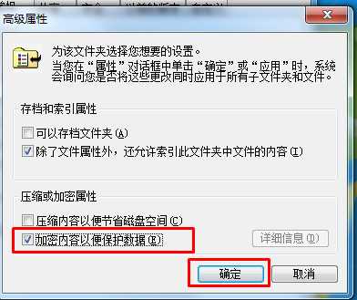 2、勾選“加密內(nèi)容以便保護數(shù)據(jù)”選項,然后點擊確定;
