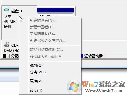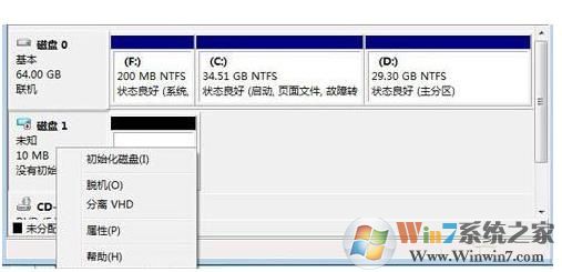 如果想要刪除虛擬磁盤只要在磁盤管理中,分離VHD文件即可,然后刪除VHD文件就徹底的刪除了虛擬磁盤了。