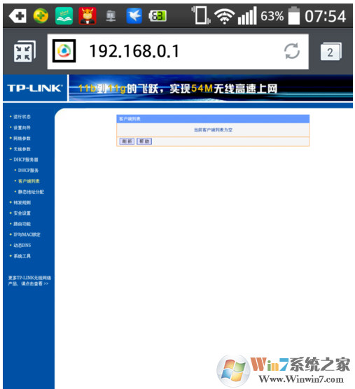 4、電腦的本地連接需要設(shè)置自動(dòng)獲取IP地址,才可以讓DHCP服務(wù)器將空閑IP自動(dòng)分配IP地址,選中“客戶端列表”,可查看已經(jīng)通過(guò)自動(dòng)獲取IP接入的電腦。