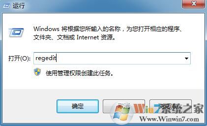 1、使用快捷鍵“win+r”,打開“運行”窗口,并輸入“regedit”;