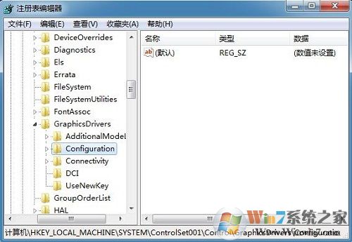 2、然后依次展開:“HKEY_LOCAL_MACHINE \SYSTEM \ ControlSet001 \ control \ GraphicsDrivers \ Configuration”;