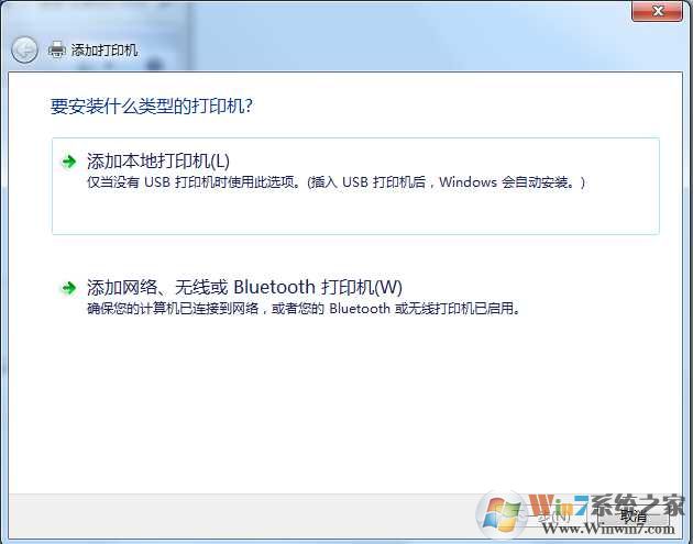 2、然后點擊添加本地打印機,Win7添加網(wǎng)絡打印機方法