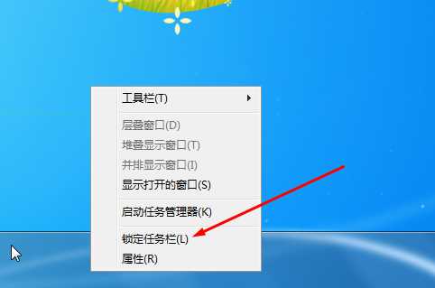 1、首先解鎖任務(wù)欄,右鍵點擊任務(wù)欄,取消鎖定;