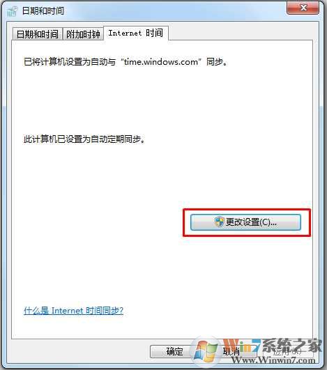 4、確定后,我們?cè)俚絠nternet時(shí)間,點(diǎn)擊更改設(shè)置按鈕;