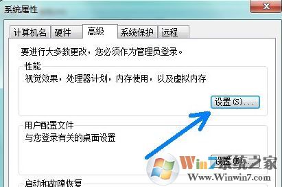 2、點(diǎn)擊“高級”,然后點(diǎn)擊性能下面的【設(shè)置】按鈕;