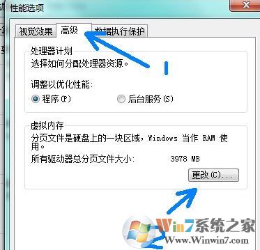 3、再次“高級”,點(diǎn)擊【更改】按鈕;
