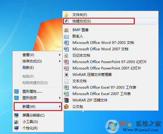 2、選擇新建,然后快捷方式