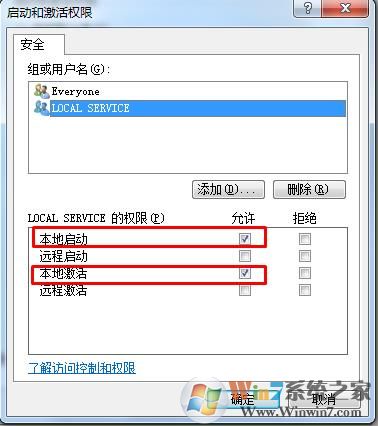 5.返回之后,選中LOCAL SERVICE 注意勾選下面的本地啟動(dòng)和本地激活(注意,默認(rèn)是沒(méi)有選擇的),然后再點(diǎn)擊確定!