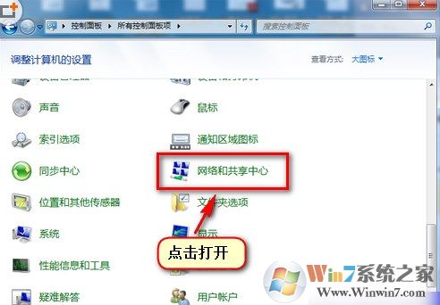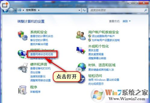 1、 依次打開(kāi)控制面板—網(wǎng)絡(luò)和共享中心 ,選擇“類別”查看方式。