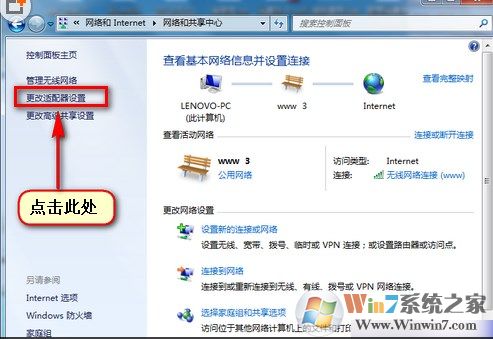 3、 點(diǎn)擊左側(cè)“更改適配器設(shè)置”;