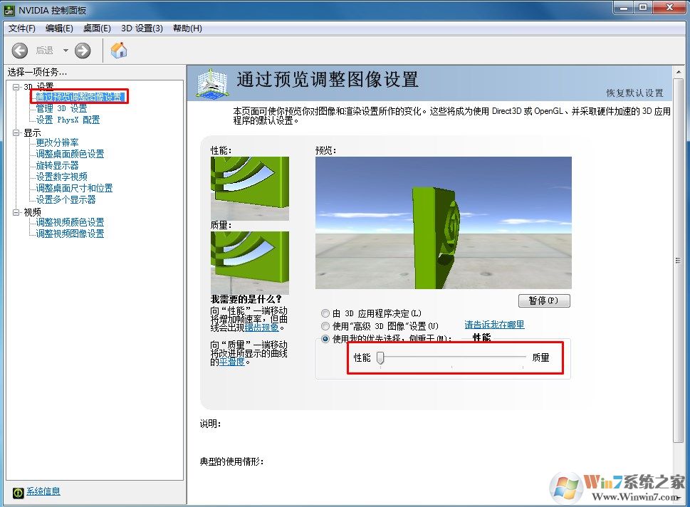 在預(yù)覽圖像設(shè)置中將3d滑塊滑到最左邊性能