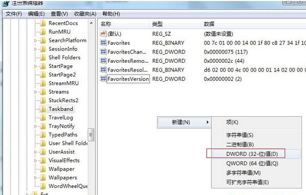 3、然后選中“Taskband”項然后在右側(cè)窗口中新建一個“Dword”值,將其命名為“Minthumbzizepx”,如下圖所示: