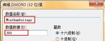 4、然后雙擊之前建立好的Dword值“Minthumbzizepx”,將數(shù)值設(shè)置為“400”;