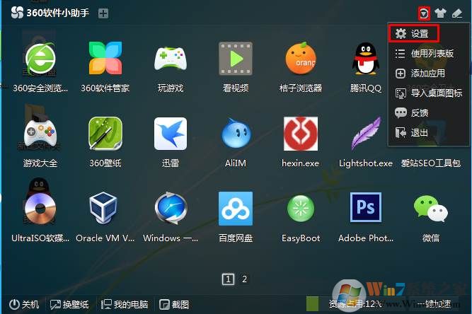 2、然后點(diǎn)擊右上角的向下箭頭,選擇設(shè)置;