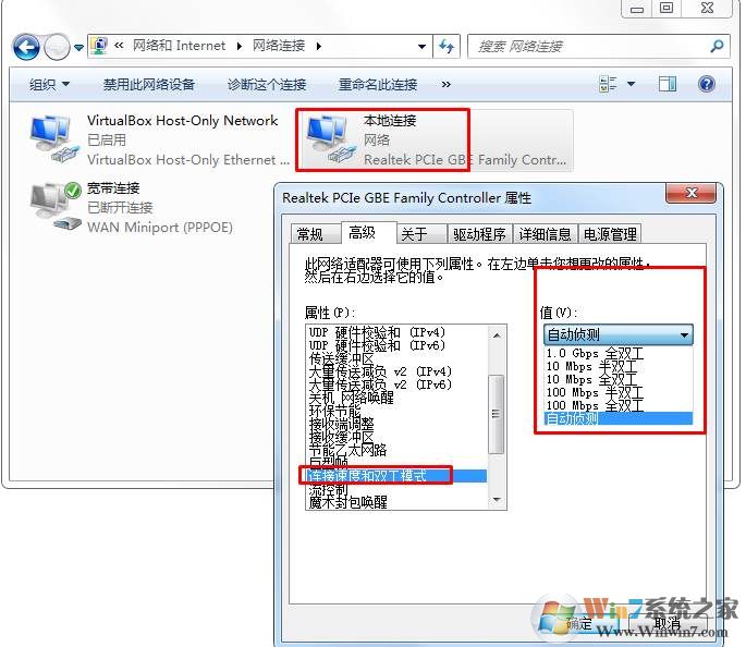 如果是Win7系統(tǒng),打開網(wǎng)絡(luò)和共享中心,然后點擊 更改適配器設(shè)置 ——本的連接屬性——配置——高級——連接速度和雙工模式 然后更改為10M全雙工
