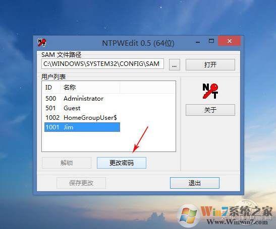 2、. 在這個(gè)界面下,點(diǎn)擊“打開”按鈕,軟件會(huì)首先列出系統(tǒng)中的所有用戶名,選擇你要破解的那個(gè),然后點(diǎn)擊“更改密碼”按鈕即可;