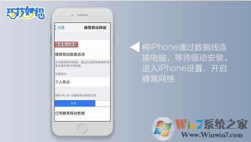 1、將iPhone通過數(shù)據(jù)線連接電腦,等待驅(qū)動(dòng)安裝完成。進(jìn)入iPhone設(shè)置,開啟蜂窩網(wǎng)絡(luò)(4G)