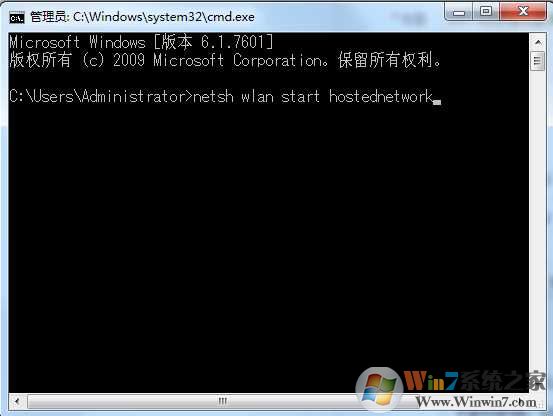 開啟無線網(wǎng)絡,在命令提示符里輸入:netsh wlan start hostednetwork