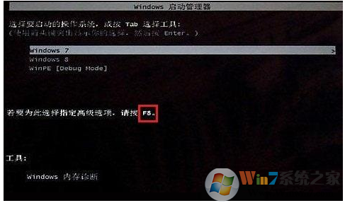 方法一:開機在進入Windows系統(tǒng)啟動畫面之前按下F8鍵;