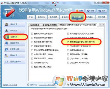 這里說的優(yōu)化工具有很多種,一般支持WindowsVista的優(yōu)化工具,都能用來優(yōu)化WIndows7,比如Vista優(yōu)化大師(進(jìn)入下載),Vista總管(進(jìn)入 下載)等,當(dāng)然那些專門設(shè)計(jì)給Windows7的優(yōu)化軟件也可以達(dá)到一樣的效果,比如Windows7優(yōu)化大師(進(jìn)入下載)、Windows7總管等等。這些工具中的系統(tǒng)設(shè)置中,右鍵設(shè)置都有 添加獲得管理員權(quán)限的功能,這里就不詳細(xì)說明了,大家自己找一下即可。
