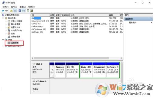 2、然后打開管理,我們可以看到磁盤管理,點擊打開;示圖