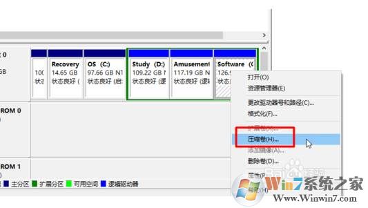3、接下來右鍵點擊C盤,然后選擇壓縮卷 選項;
