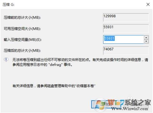 5、然后出現(xiàn)一個分盤界面,我們輸入壓縮空間量,也就是要多C盤拿出來的總量,1000M=1GB C盤建議保留50G以上空間;