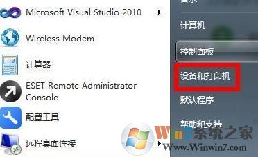 1、點擊左下角的 開始菜單 按鈕,點擊打開【設備和打印機】;