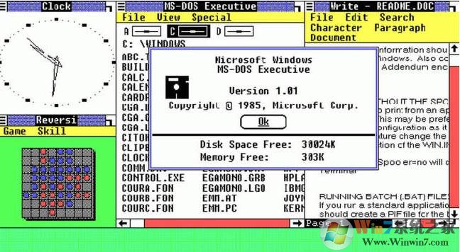 Windows——最初代號Interface Manager——由比爾蓋茨打造于1983年,但是一直沒有發(fā)表,直到1985年11月20日。它的首次現(xiàn)身是作為微軟的DOS命令行或者磁盤操作系統(tǒng)的前端。Windows1.0只能支持平鋪窗口,但有臺式機的功能,如MS-DOS文件管理器、日歷、Cardfile、記事本、終端、計算器和時鐘。