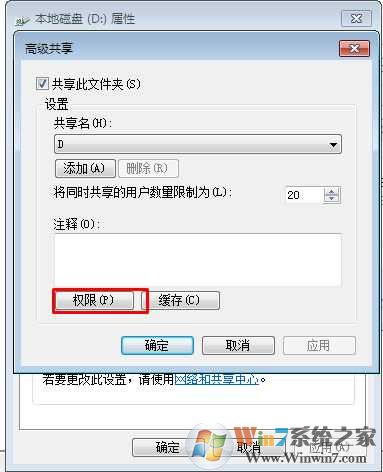 3、接下來點擊“權(quán)限”按鈕來進行設置;