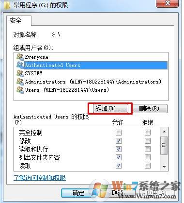 3、再點擊添加按鈕,如下圖(下圖小編已經(jīng)添加了everyone),如果有的只要設置一下everyone的權(quán)限就可以了~