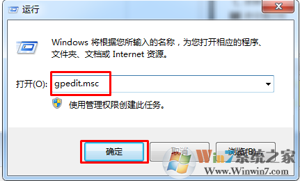 2.在“運(yùn)行”對話框中輸入“gpedit.msc”,點(diǎn)擊確定打開“組策略編輯器”。