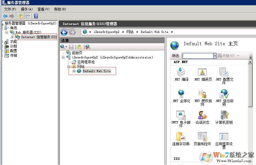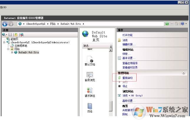 1.服務(wù)器管理器-->角色-->Web服務(wù)器-->Internet信息服務(wù)-->iZmswfrfqsevOpZ-->網(wǎng)站-->選中現(xiàn)在所運(yùn)行的網(wǎng)站 Default Web Site