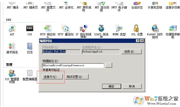 3.在身份驗(yàn)證上點(diǎn)擊鼠標(biāo)右鍵-->基本設(shè)置,在彈出框中選擇“連接為”
