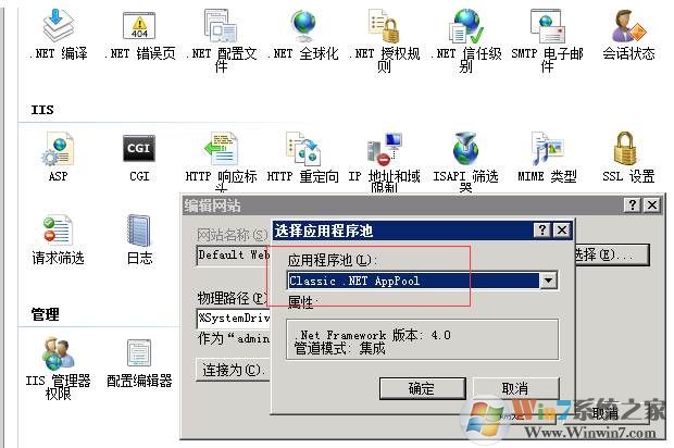10、在下面的彈框中的應(yīng)用程序池中選擇“Classic.NET AppPool”,點(diǎn)擊“確定”