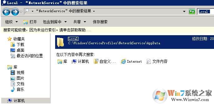 1.進(jìn)入“C:\Windows\ServiceProfiles\NetworkService\AppData\Local”,如果找不到的話在該目錄下進(jìn)行搜索“Local”,可以搜索到