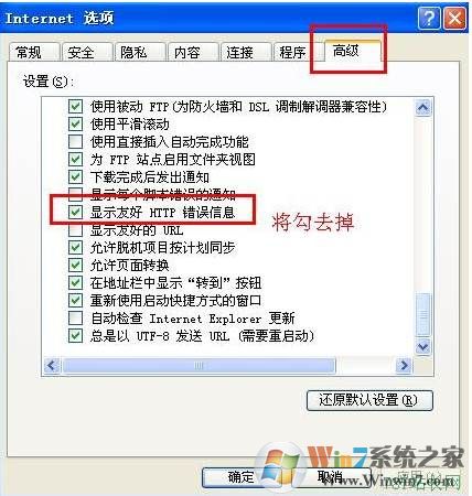 在internet選項(xiàng)的高級下,取消顯示友好http錯(cuò)誤信息即可。