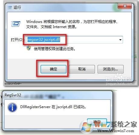 1、首先打開運行,然后輸入regsvr32 jscript.dll 后選擇“確定”。