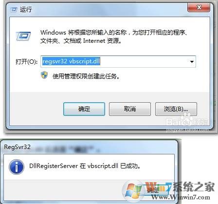 2、然后再輸入再次輸入regsvr32 vbscript.dll 選擇“確定”。
